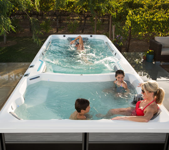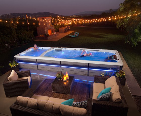 The E2000 is a swim spa for those who refuse to compromise. On one side you’ll find the ultimate swim-in-place experience. On the other you’ll be treated to the best in hydromassage technology – an experience you’ll melt into. Warm up in the spa pool, exercise in the swim spa, then return to the spa pool for a cool down. Enjoy either side by yourself or with a crew. The E2000 grants you limitless options – what you do with them is up to you.