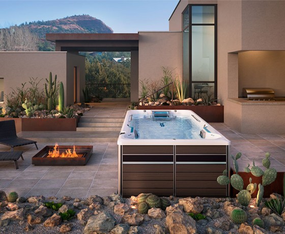 Seating for two more can be found on either side of the current generation system, and when the swim spa isn’t in use, there’s standing room for many more in the main pool, turning the E500 from fitness system to party host!