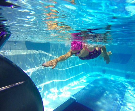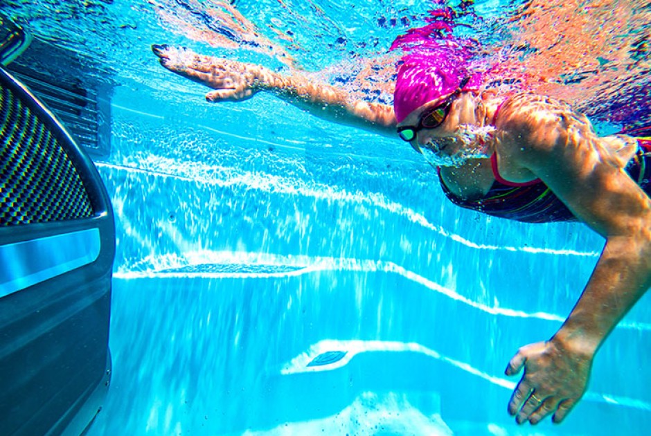 The current is delivered by a truly innovative, hydraulically powered propulsion system, capable of sending up to 19,000L of water past a swimmer every minute, in a deep, wide and turbulence-free column. Easily adjust the speed of this current, from doggy paddle (4:04/100m) to Olympic sprint (1:14/100m).